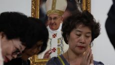 [서울=뉴스핌] 양윤모 기자 = 24일 오후 선종한 프란치스코 교황의 빈소가 마련된 서울 종로구 주한 교황청 대사관에서 시민들- 2025-04-24 14:25