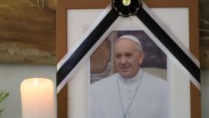 촛불앞에 웃고있는 프란치스코 교황