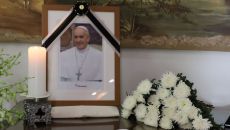 [서울=뉴스핌] 양윤모 기자 = 24일 오후 선종한 프란치스코 교황의 빈소가 마련된 서울 종로구 주한 교황청 대사관에서 시민이- 2025-04-24 14:24