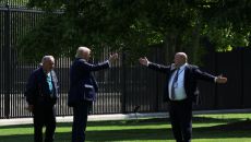 23일(현지시간) 오전 미국 백악관 북쪽 잔디 부지. 도널드 트럼프 미 대통령에게 한 남성이 양팔을 넓게 벌려 보였다. 이 남- 2025-04-24 13:57