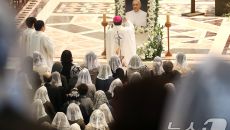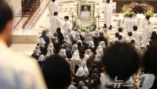 (대구=뉴스1) 공정식 기자 = 24일 오전 천주교 대구대교구 주교좌 범어대성당에서 신자들이 프란치스코 교황 추모 미사를 봉헌- 2025-04-24 13:48