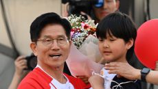아이와 기념촬영하는 김문수 국민의힘 대선 후보