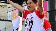 [당진=뉴스핌] 최지환 기자 =김문수 국민의힘 대선후보가 25일 충남 당진시장에서 지지자들을 향해 큰 절을 하고 있다.2025- 2025-05-25 19:23