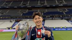 이강인도 태극기 허리춤에 둘렀다…우승 세리머니 → 0분 출전에도 프랑스컵 2연패 환호 → 통산 7번째 트로피