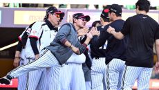 NC 4연승 저지한 두산 이승엽 감독 "로그 호투로 흐름 내주지 않아"