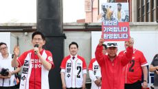 [서산=뉴스핌] 최지환 기자 = 김문수 국민의힘 대선후보가 25일 오후 충남 서산시 로데오거리에서 열린 유세 현장에서 지지를- 2025-05-25 18:22