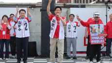 (서산=뉴스1) 김민지 기자 = 김문수 국민의힘 대통령 후보가 25일 오후 충남 서산시 중앙통 로데오거리에서 집중유세를 하고- 2025-05-25 18:02