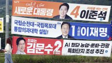 (순천=뉴스1) 김태성 기자 = 제21대 대통령 선거를 9일 앞둔 25일 전남 순천 송광사입구 한 도로에 이재명 더불어민주당- 2025-05-25 18:01