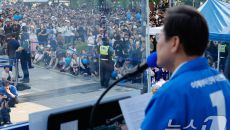 (아산=뉴스1) 안은나 기자 = 이재명 더불어민주당 대통령 후보가 캐스팅보트인 충청권 공략에 나선 25일 오후 충남 아산시 탕- 2025-05-25 17:58