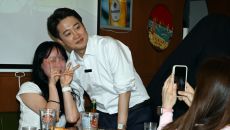 아시아투데이 박성일 기자 = 이준석 개혁신당 대선 후보가 25일 오후 서울 종로구 서순라길 유세에서 시민들과 사진을 찍고 있다- 2025-05-25 17:58