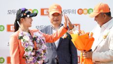 [mhn포토] 박현경, 페럼 고문성 대표와 하이파이브