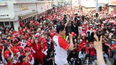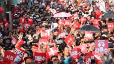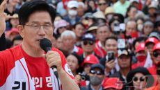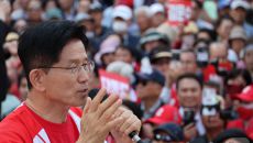 (서산=뉴스1) 김민지 기자 = 김문수 국민의힘 대통령 후보가 25일 오후 충남 서산시 중앙통 로데오거리에서 집중유세를 하고- 2025-05-25 17:51