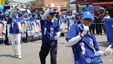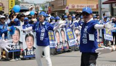 [당진=뉴스핌] 김학선 기자 = 이재명 더불어민주당 대선 후보 선거운동원들이 25일 충남 당진시 당진전통시장 앞 유세장에서 이- 2025-05-25 17:14