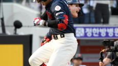 [포토] 전준우 '김태형 감독을 웃게 만든 동점포'