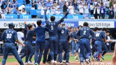 25일 대구 삼성라이온즈파크에서 열린 KBO리그 삼성과 KIA의 경기. 9회말 삼성 디아즈가 끝내기 홈런을 날렸다. 동료들과- 2025-05-25 17:00