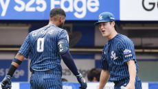 [포토] 디아즈-이호성 '9회를 우리가 책임졌다'