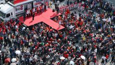 지지자들에게 사인해주는 김문수