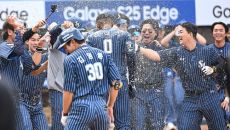 [사진] 짜릿한 끝내기 홈런 축하받는 디아즈