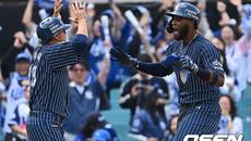 [사진] 디아즈와 끝내기 홈런 기쁨 나누는 이호성