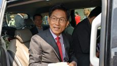 [옥천=뉴스핌] 최지환 기자 = 김문수 국민의힘 대선 후보가 25일 충북 옥천군 육영수 여사 생가 방문 일정을 마친 후 차량에- 2025-05-25 10:42