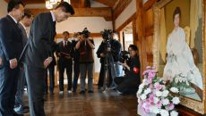 [옥천=뉴스핌] 최지환 기자 = 김문수 국민의힘 대선 후보가 25일 충북 옥천군 육영수 여사 생가를 방문해 묵념하고 있다. 2- 2025-05-25 10:40