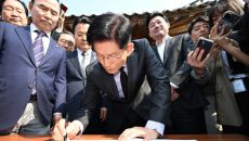 방명록 남기는 김문수