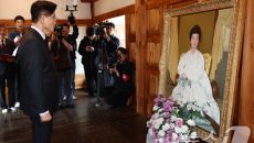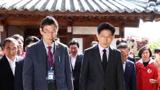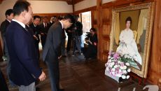 육영수 여사 생가서 방명록 작성하는 김문수 후보