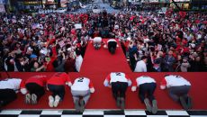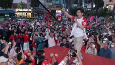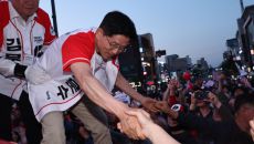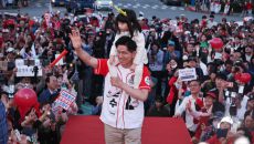 [아산=뉴스핌] 김학선 기자 = 김문수 국민의힘 대선후보가 25일 저녁 충남 아산시 온양온천역에서 열린 선거유세에서 큰절을 하- 2025-05-25 20:30