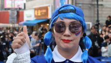[천안=뉴스핌] 김학선 기자 = 25일 충남 천안시 신부문화거리에서 이재명 더불어민주당 대선후보 지지자업지를 들어 보이고 있다- 2025-05-25 20:22