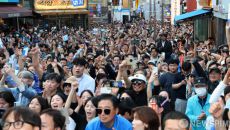[천안=뉴스핌] 김학선 기자 = 25일 충남 천안시 신부문화거리에서 지지자들이 이재명 더불어민주당 대선후보의 연설에 환호하고- 2025-05-25 20:22