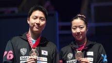 [포토] 혼합복식 신유빈-임종훈 ‘동메달 목에 걸고’