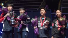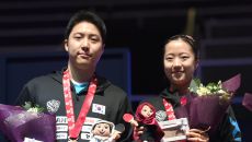 임종훈, 신유빈이 24일 카타르 도하 루사일 아레나에서 열린 2025 국제탁구연맹(ITTF) 세계선수권대회 혼합복식 시상식에서- 2025-05-25 00:46