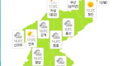 북한날씨, 평양 16.5도 "10mm 요란한비" 백두산 6.2도