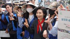 (서울=뉴스1) = 김문수 국민의힘 대통령 후보 배우자 설난영 여사가 25일 경기 평택 통복시장을 방문, 지지를 호소하고 있다- 2025-05-25 20:04