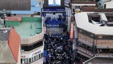 천안시 신부문화거리는 이재명 후보 연설로 통행이 어렵네