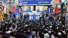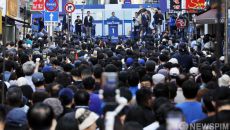천안시 신부문화거리의 이재명 후보 연설현장