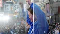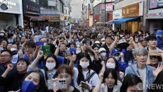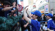[천안=뉴스핌] 김학선 기자 = 25일 충남 천안시 신부문화거리에서 지지자들이 이재명 더불어민주당 대선후보의 연설을 듣고 있다- 2025-05-25 19:50