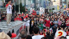 한동훈, 처음으로 '김문수' 적힌 옷 입고 유세…"포기하지 말라"