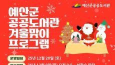 [박보성 기자] 충남 예산군 공공도서관은 겨울철을 맞아 오는 12월 20일 어린이와 가족이 함께 참여할 수 있는 '겨울맞이 크- 2025-12-05 14:51