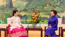 [서울=뉴스핌] 김혜경 여사와 펑리위안 여사가 지난 5일 중국 인민대회당에서 대화를 나누고 있다. [사진=청와대] 2026.0- 19시간전