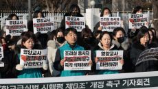 [서울=뉴스핌] 이길동 기자 = 전국교직원노동조합 관계자들이 7일 서울 종로구 정부서울청사 앞에서 '학교급식법 시행령' 개정- 2026-01-07 10:27