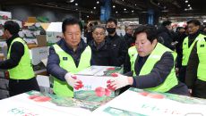 (서울=뉴스1) 신웅수 기자 = 정청래 더불어민주당 대표가 7일 서울 송파구 가락동 농수산물 종합도매시장을 찾아 낙찰받은 과일- 2026-01-07 08:49