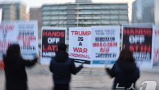 (서울=뉴스1) 김도우 기자 = 평화주권행동 평화너머 활동가들이 7일 서울 종로구 미국대사관인근에서 미국의 베네수엘라 침공을- 2026-01-07 08:37