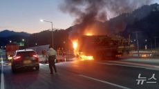 영월 교차로서 달리던 트럭 화재…차량·적재물 전소