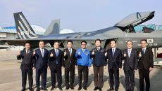 KF-21 보라매 전투기 앞에선 김민석 총리