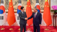 [서울=뉴스핌] 이재명 대통령이 지난 6일 오전 중국 베이징 댜오위타이(조어대·釣魚臺)에서 리창 총리를 만나 악수하고 있다.- 2026-01-07 17:14