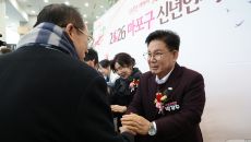 (서울=뉴스1) = 박강수 마포구청장이 7일 오후 마포아트센터에서 열린 ‘2026 마포구 신년인사회’에서 참석자들과 인사를 나- 2026-01-07 17:04