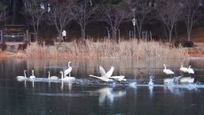 [김충남 기자] (울진=국제뉴스) 김충남 기자 = 맑게 갠 겨울 하늘 아래 울진군 연호공원에서 겨울 철새 고니가 힘차게 날아오- 2026-01-07 16:57
