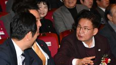박강수 마포구청장(오른쪽)이 7일 서울 마포아트센터에서 열린 2026년 마포구 신년인사회에 참석해 오세훈 서울시장, 정청래 더- 2026-01-07 16:49