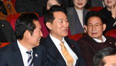 오세훈 서울시장(가운데)이 7일 서울 마포아트센터에서 열린 2026년 마포구 신년인사회에 참석해 정청래 더불어민주당 대표(왼쪽- 2026-01-07 16:48
